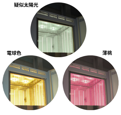 *2:疑似太陽光 【天井】植物育成用高光量LED「ハイエネライト」疑似太陽光 600形 1灯 【扉面・左右背面】疑似太陽光 蛍光灯型LED「サンレーライト®」 40形 4灯×4面